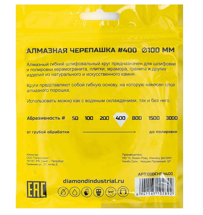 Алмазный гибкий шлифовальный круг 100 мм предназначен для шлифовки и полировки керамогранита, гранита, плитки, мрамора и других изделий из натурального и искусственного камня.