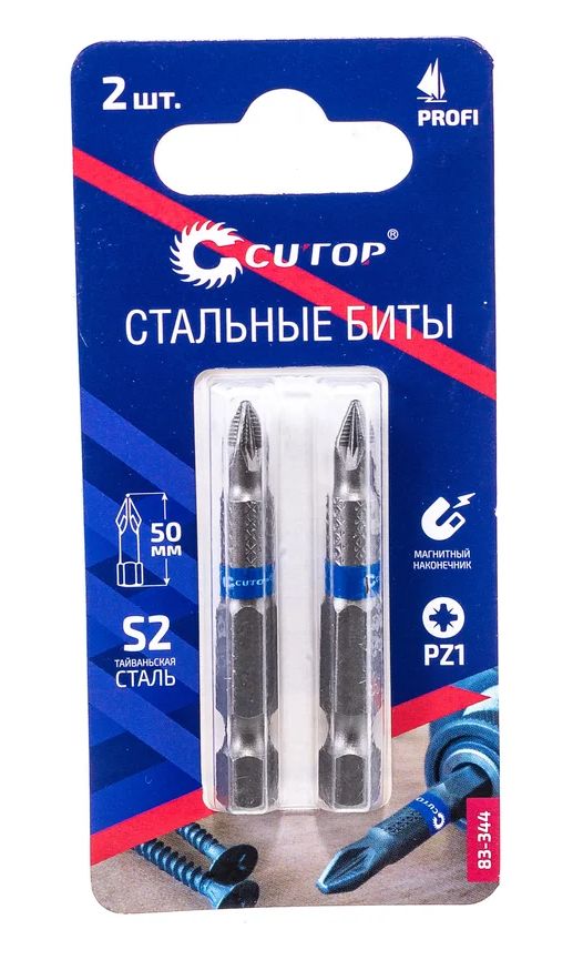 Набор стальных бит Profi (2 шт; PZ1; 50 мм) CUTOP предназначен для шуруповертов и гайковертов. Биты произведены по технологии CUTOP, ресурс от 2000 шт. саморезов. Ребра биты производятся с помощью холодной штамповки, кончик проходит специальный процесс закалки при температурах до 870°C, что увеличивает срок службы и обеспечивает высокую точность.