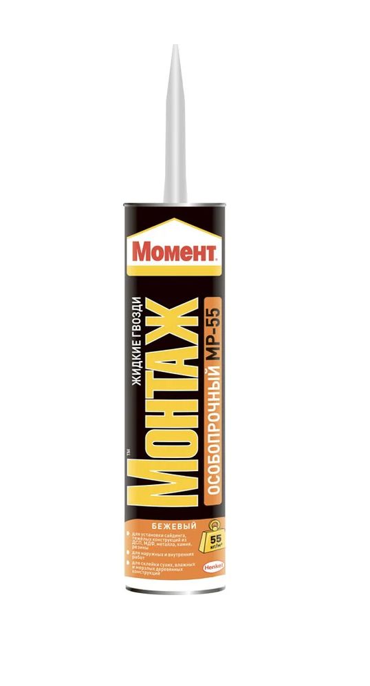 Монтажный клей Момент Монтаж Особопрочный МР-55 423 г используется во время ремонтных и строительно-монтажных работ. Изделие предназначается для склеивания заготовок из дерева, металла, керамики, МДФ, ПВХ, пробки, пенопласта.