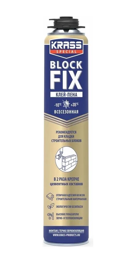 Специальный профессиональный однокомпонентный полиуретановый клей высокой механической прочности для надёжной фиксации строительной кладки, газобетонных, кирпичных, пазогребневых блоков, пенополистирольных плит, гипсовых, керамзитобетонных и железобетонных изделий, в том числе ФБС.