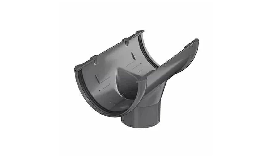 Элемент отводит собранную с кровли воду из желоба в стояк водосточной трубы. Двойное крепление воронки к лобовой доске дает конструкции дополнительную жесткость, монтаж элемента не требует дополнительных кронштейнов желоба.