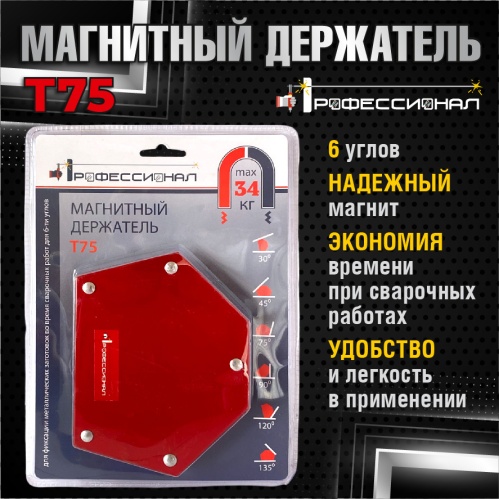 Магнитный держатель T-75 «Профессионал» является самым мощным и крупным из представленных держателей. Благодаря шести углам наклона и мощному магниту, он способен удерживать даже самые тяжелые детали. Изготовлен из прочных и термостойких материалов и подходит для использования в профессиональных целях.